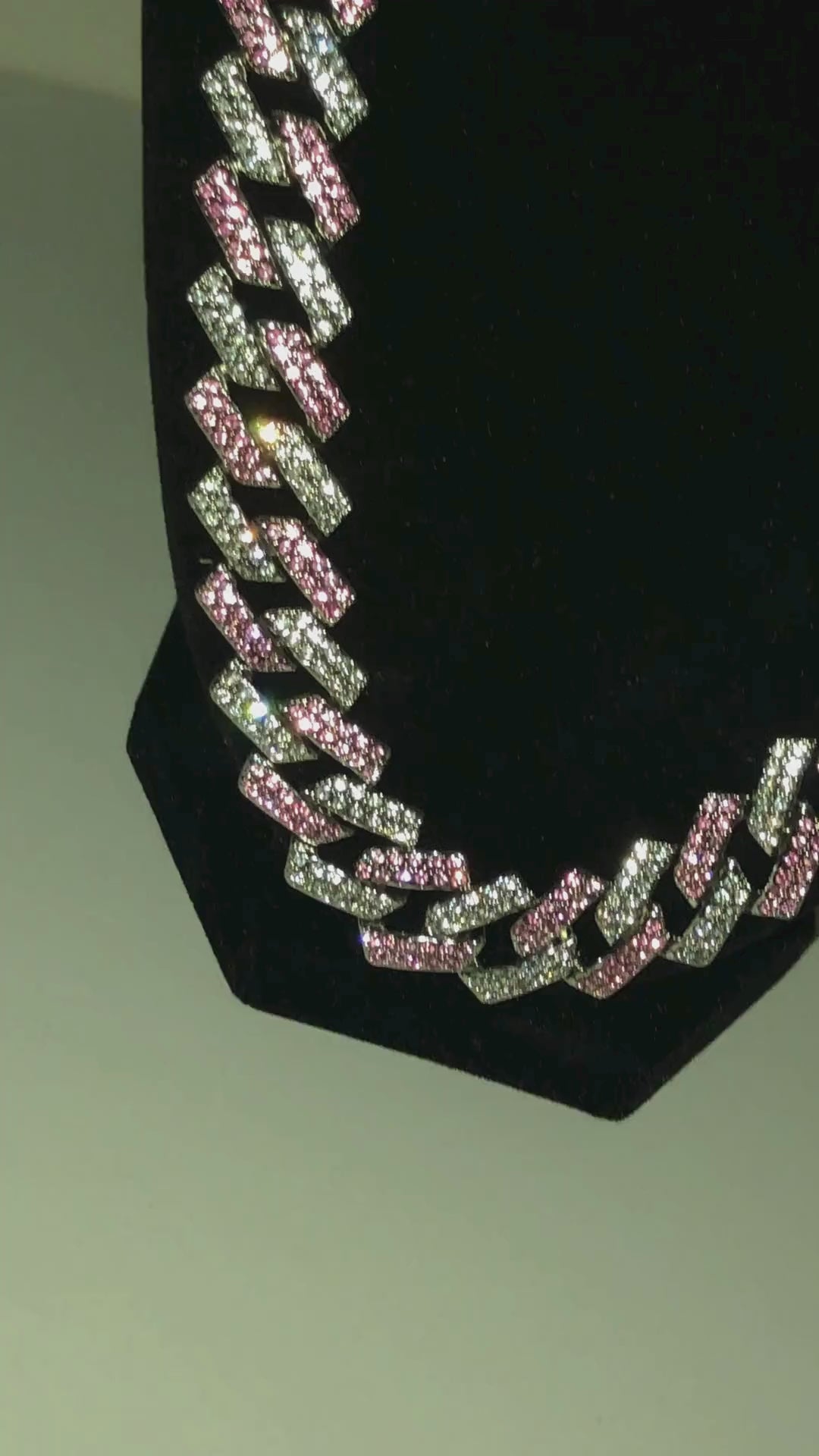 Wyrazisty łańcuch w kolorze różowo-srebrnym to połączenie odwagi i elegancji. Doskonały dla miłośników stylu streetwear i błysku.